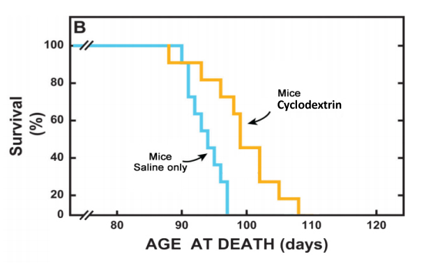 They studied the lifespan of mice treated systemically with either saline or Cyclodextrin at weekly